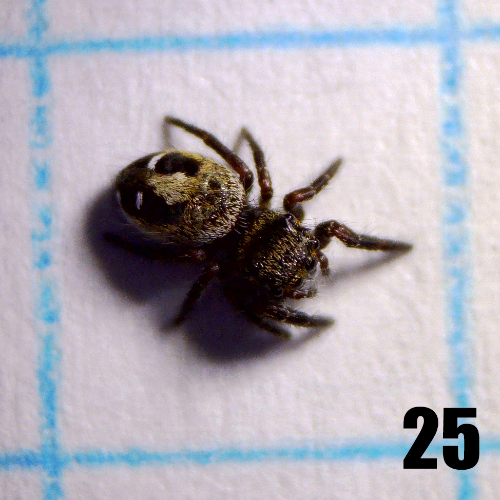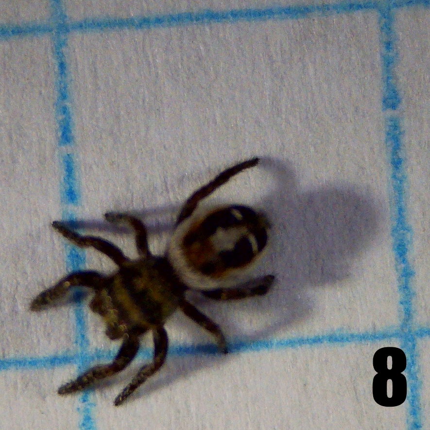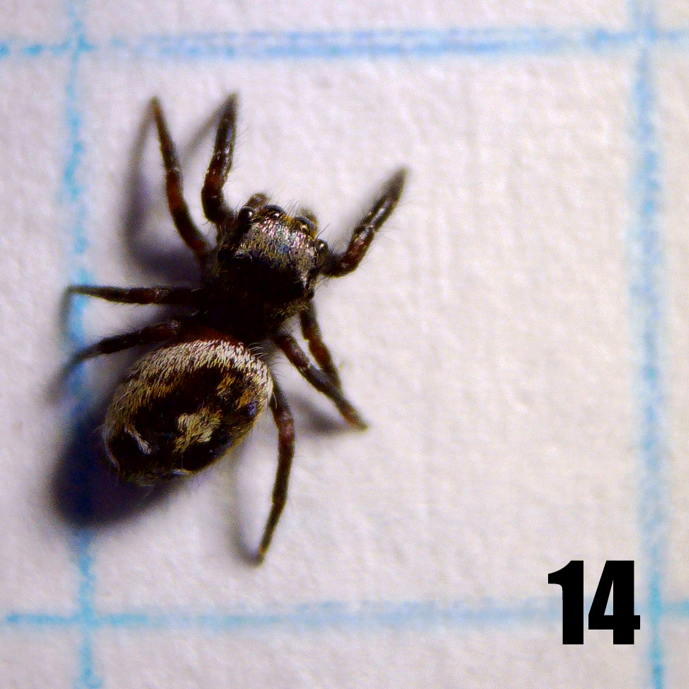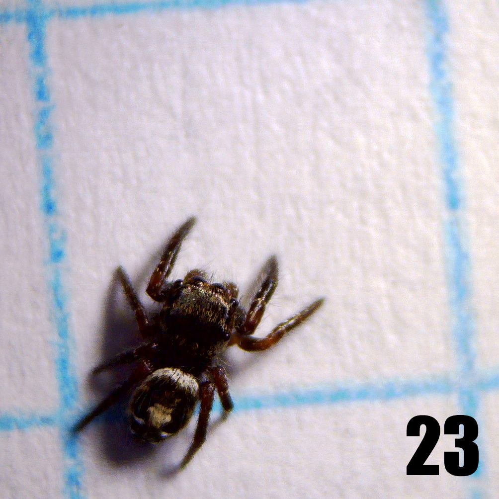 Regarding misting, I began again after the molting losses. If a sling is in its nest, I mist directly on a swatch of paper towel and place it inside. If the sling is active during the day, then I only mist once or twice a week. This seems to have worked. I had one mismolt (#14) that lost a couple of legs, but it’s doing well and eating.