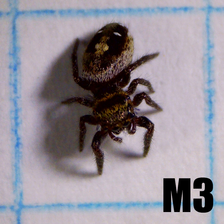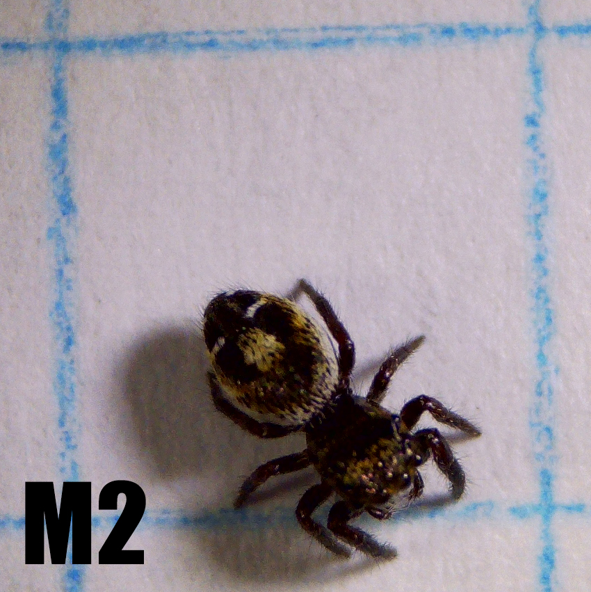As you can see, I’m down to eight slings. Doesn’t seem like much of a legacy, but it’s something. The four slings I purchased from The Spider Room have been added to the roster (ID #M1-4). I’m still worried about losing #2 but I’m hopeful the rest will survive. The heating pad seems to have helped. It didn’t hurt, in any case. It keeps them in the low seventies at night.