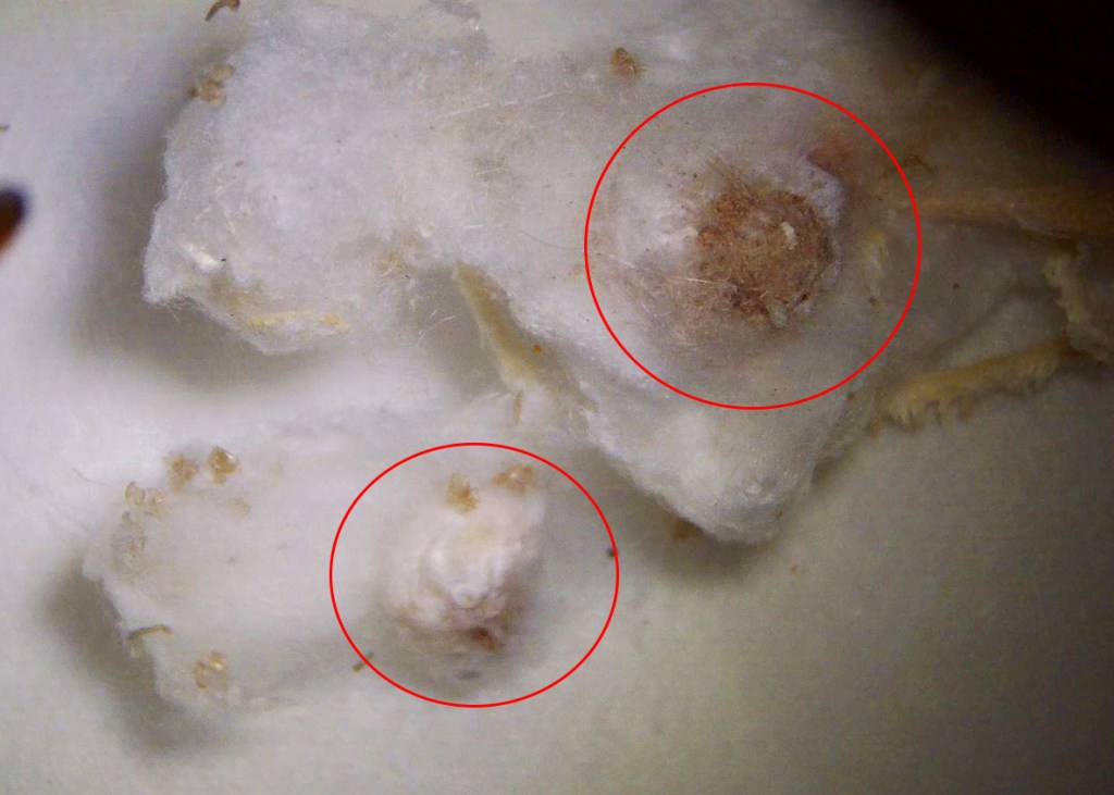 After removing everyone, I took out the egg sac and dissected it under the microscope. I found two denser masses inside, which I believe were two separate egg sacs. I’m not sure if this is normal or if Lilith was just enjoying her best life with food delivered right to her doorstep.